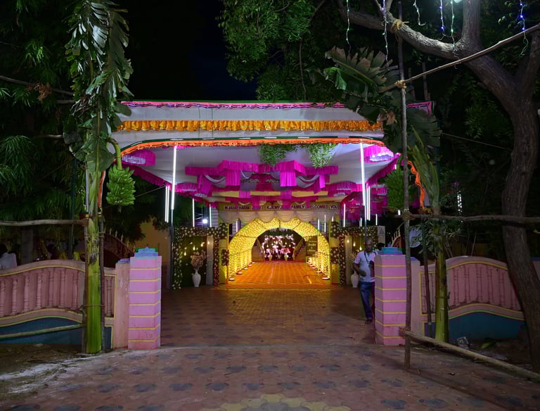 Celebrate with us at Kani Mahal and later at PMS Marriage Hall, Karungulm, for joyful receptions filled with love.